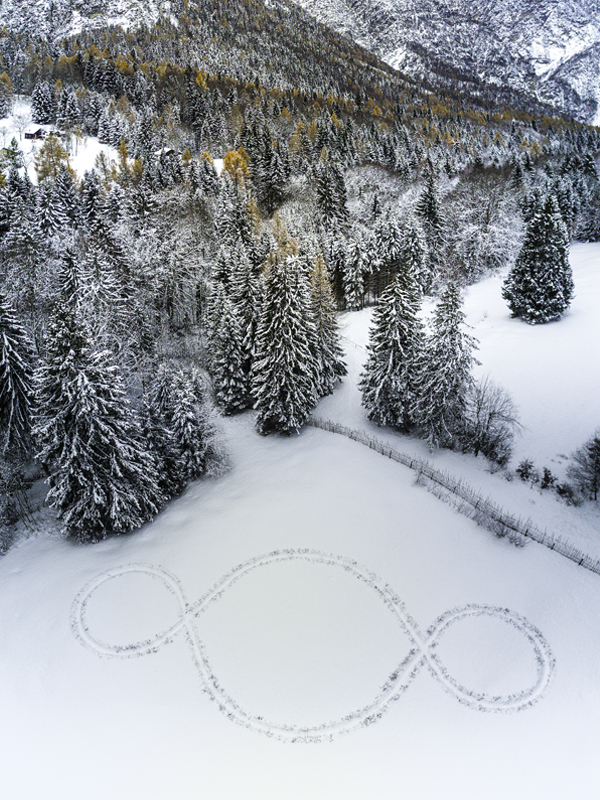 Il bracciale, ispirato all’installazione Terzo Paradiso - La trincea della pace di Michelangelo Pistoletto, è in filo massiccio d’argento.