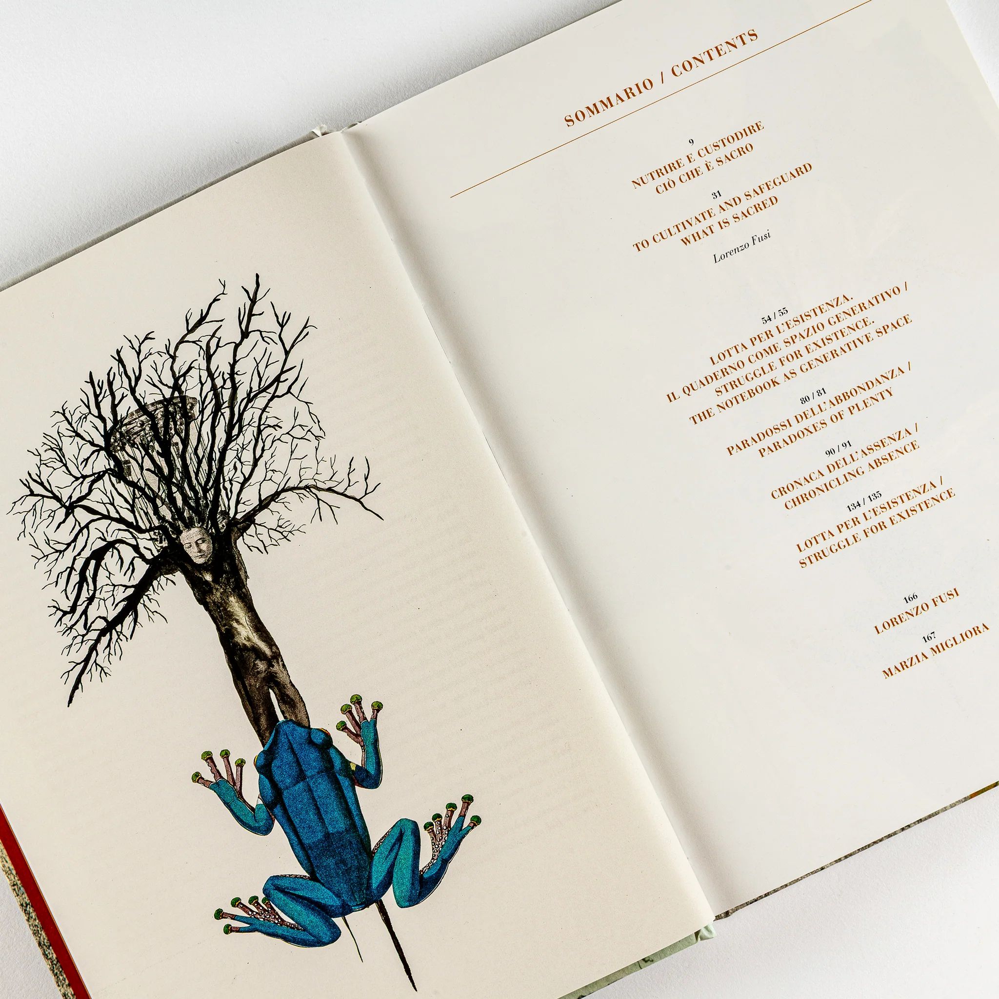 Attraverso tre nuclei di opere, concepite per dialogare con un contesto naturale segnato dalla trasformazione e dalla fragilità, il volume esplora temi centrali della ricerca di Marzia Migliora: il rapporto tra essere umano e ambiente, la memoria del luogo, l’instabilità climatica e la responsabilità collettiva. La cura, intesa come gesto estetico ed etico, si manifesta come pratica di resistenza e attenzione. Lotta per l’esistenza diventa così un libro d’artista e insieme uno strumento di riflessione, che intreccia parola e immagine per interrogare il presente e le sue tensioni ecologiche.