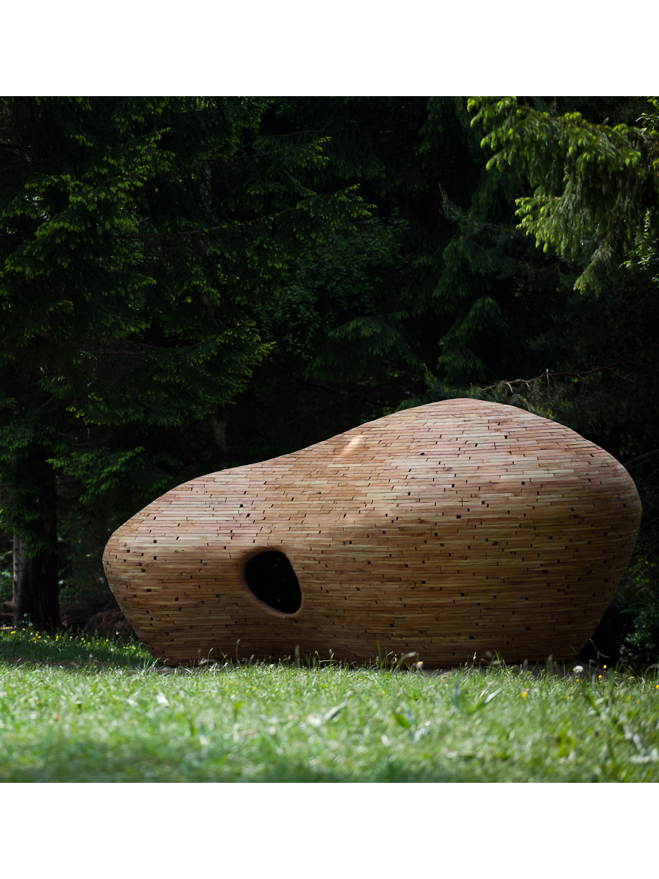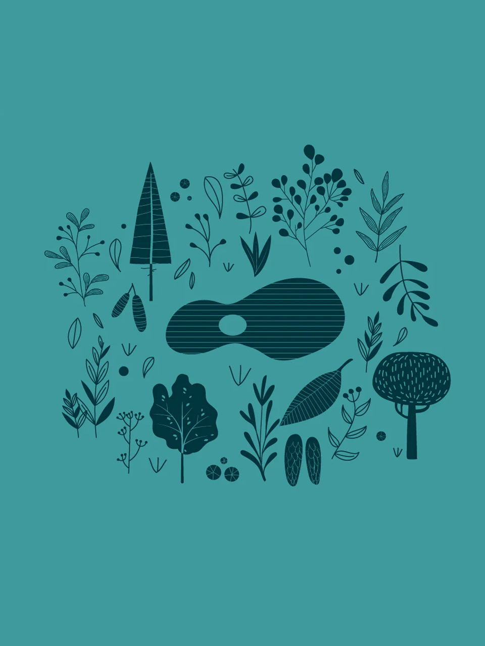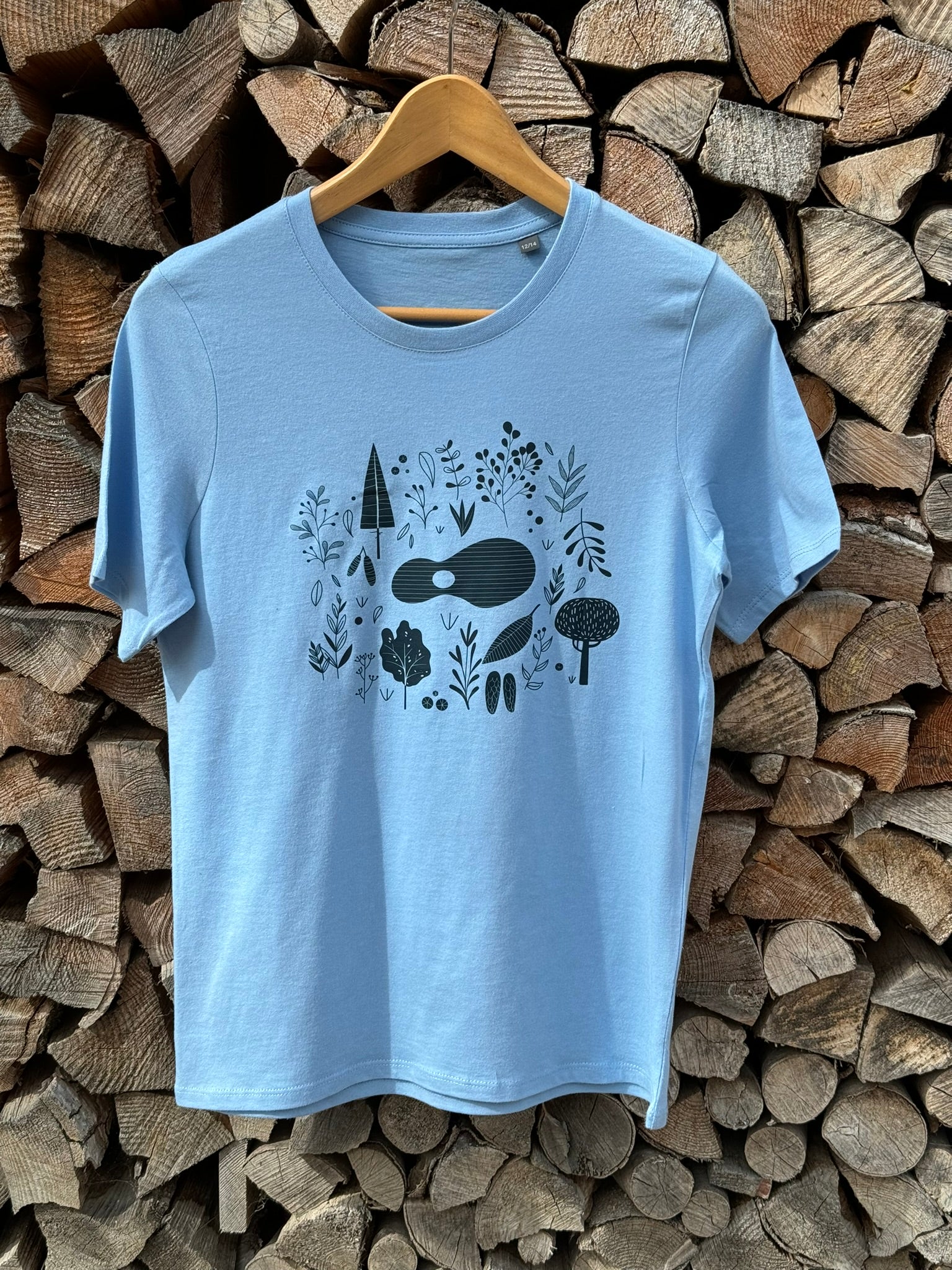 La nuova maglietta per bambino e bambina, disegnata da Adriano Siesser, che ritrae l'opera Rifugio di Anton Schaller immersa nel bosco.