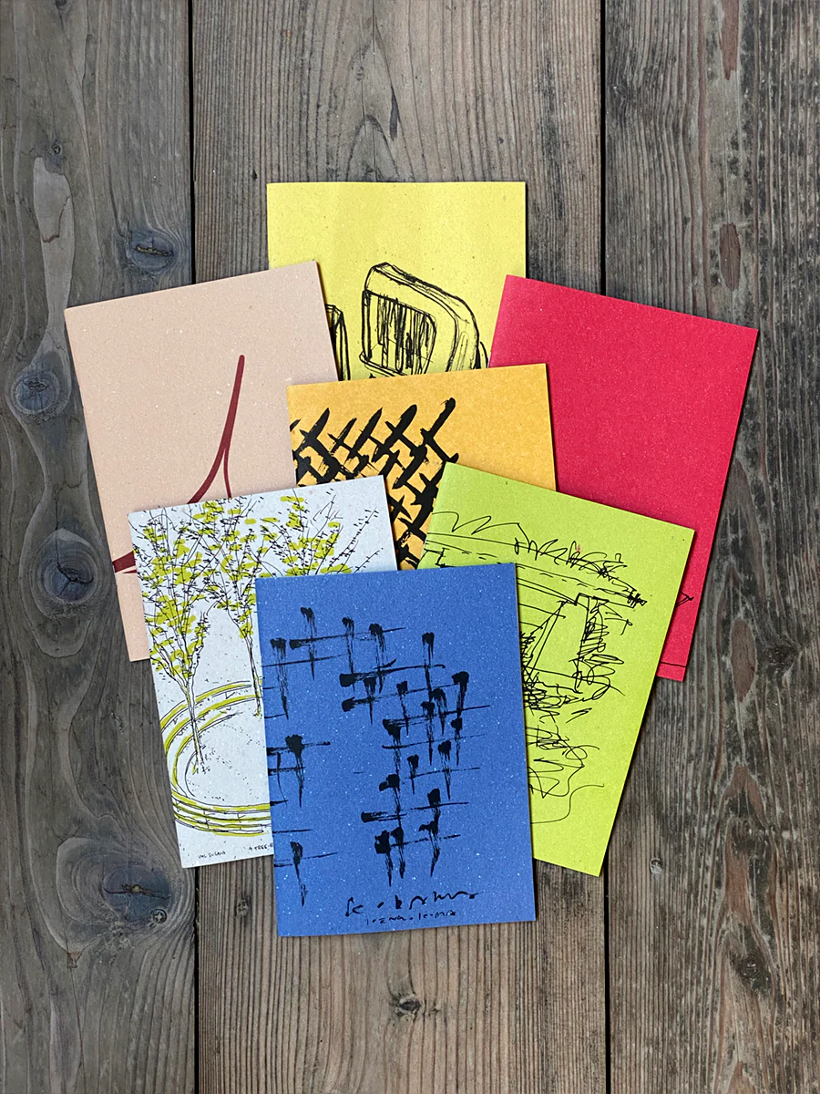 Grazie alla collaborazione con Arbos, sono nati i Quaderni Arte Sella Architettura, una serie di 8 quaderni, ognuno di diverso colore, e riportanti in copertina gli schizzi di altrettante opere presenti a Villa Strobele.